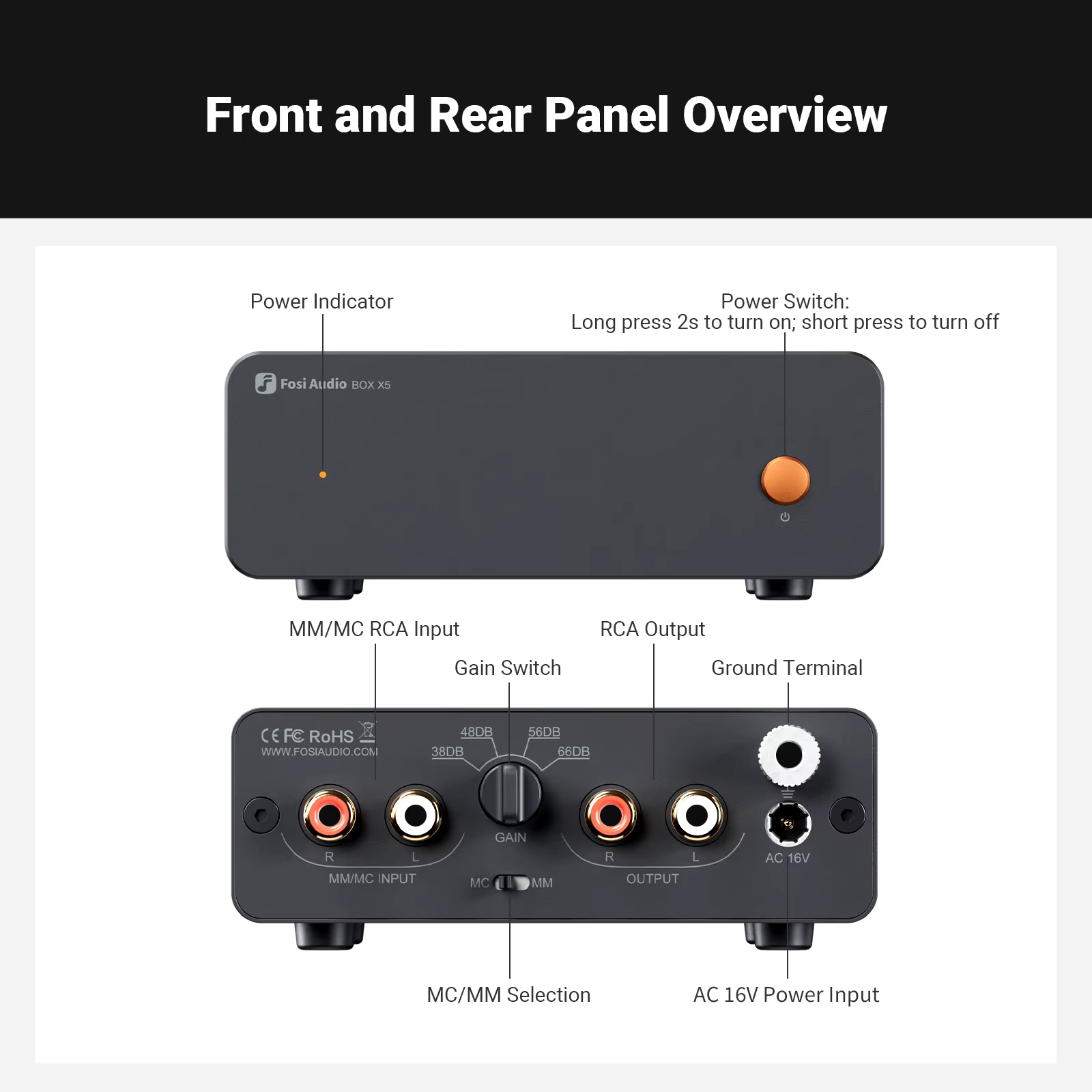 Fosi Audio BOX X5 HIFI Phono Preamp, Mini Preamplifie Home Audio for MM/MC Cartridge Turntable RIAA Preamplifier compact with V3